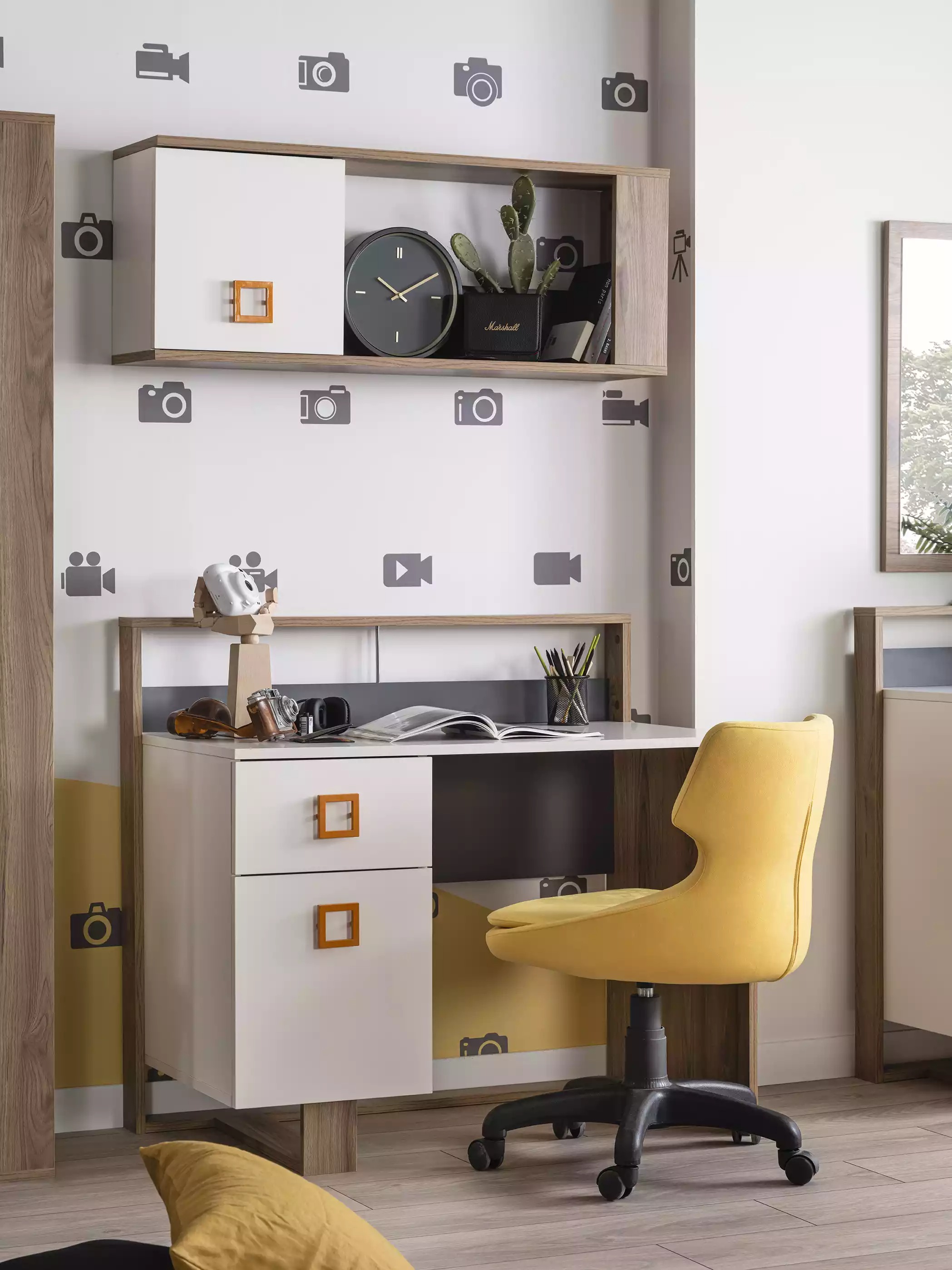 Entdecke das Schreibtisch Kinderzimmer Set 3tlg in einem frischen Gelbton! Das Set besteht aus einem geräumigen Schreibtisch, einem praktischen Bücherregal und einem bequemen Sessel - alles aus hochwertigem Holz gefertigt. Die Maße bieten genügend Platz zum Lernen, Spielen und Entspannen. Bestelle jetzt das neue Set und gestalte das Kinderzimmer fröhlich und funktional! ????