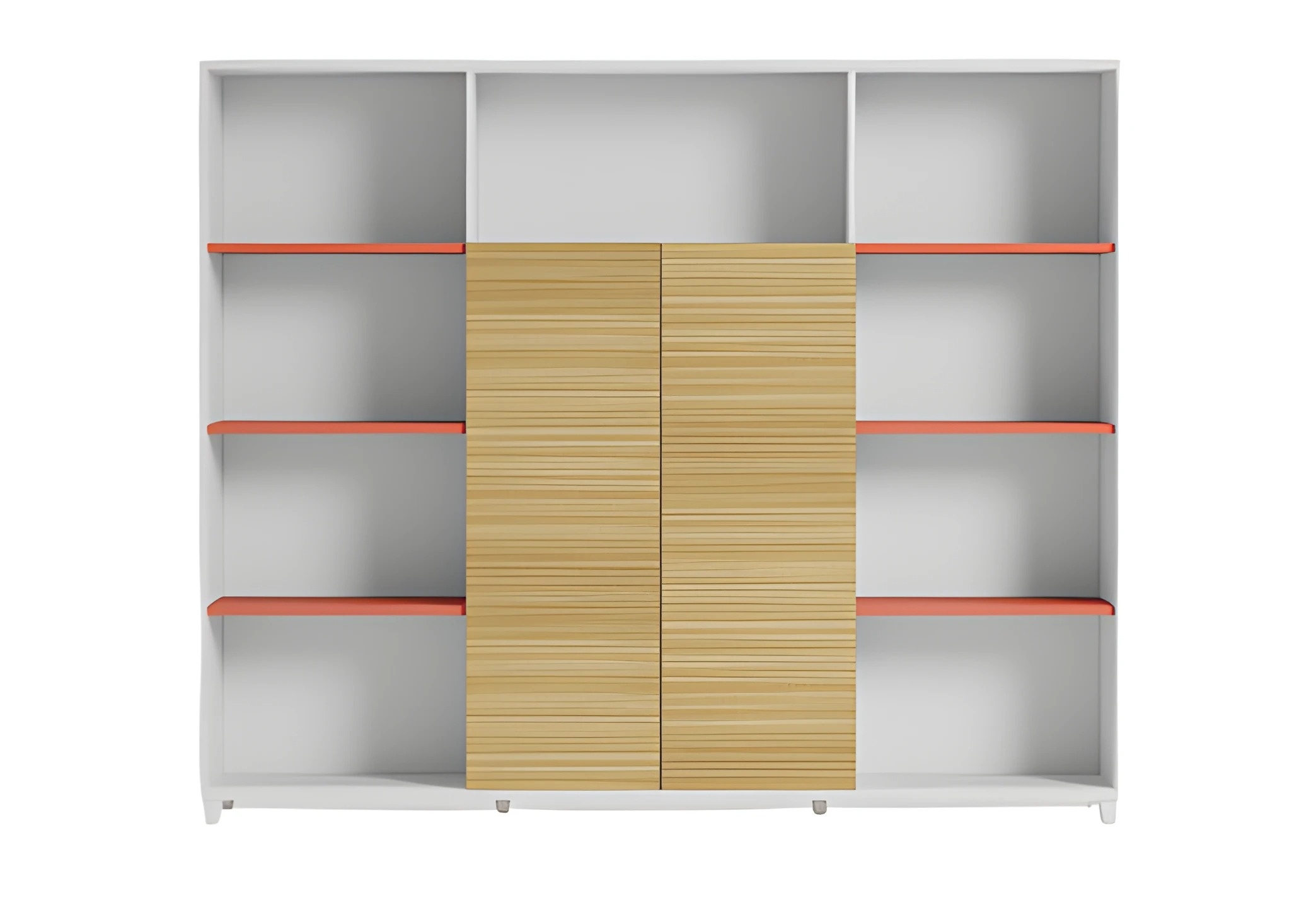 Elegant skrivbordslampa med hyllor i trä och orange accenter | xlmobler.se