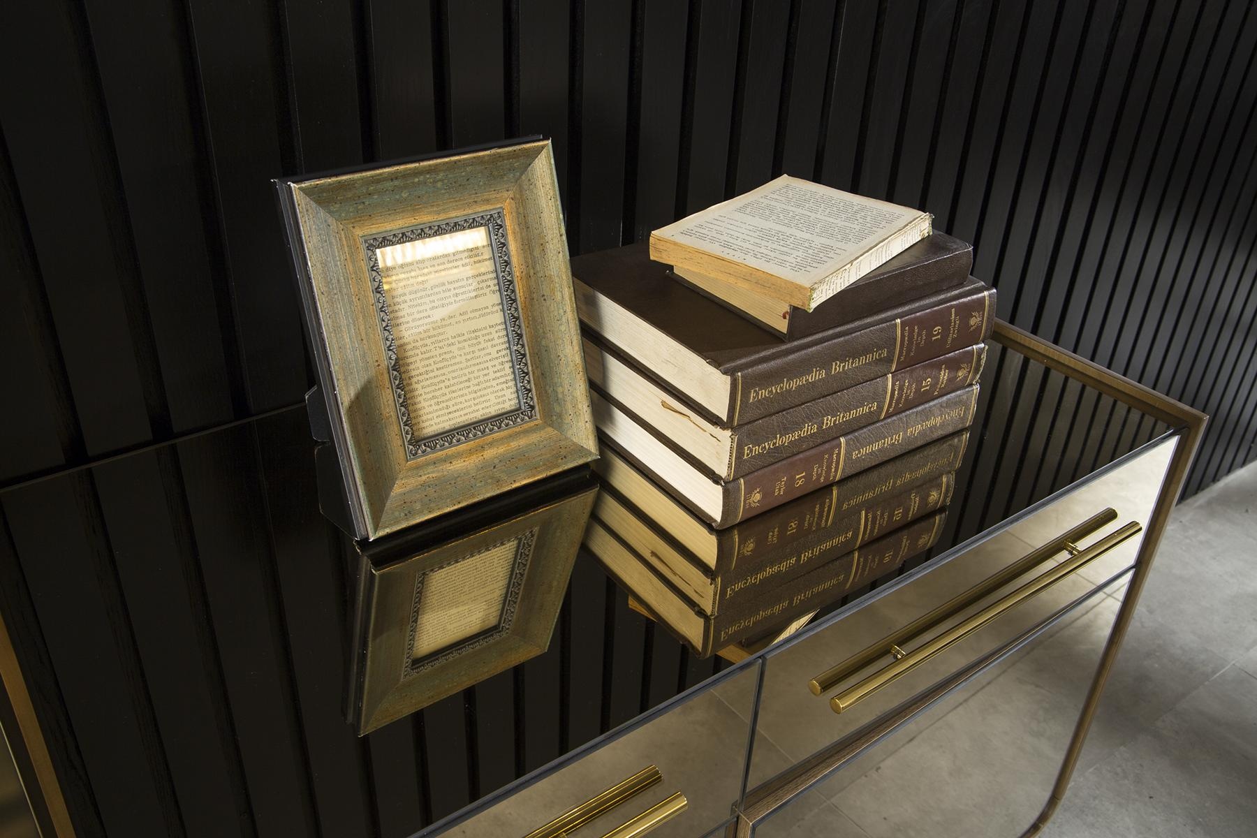Detta bord med spegel är en tidlös skapelse som förenar funktion med konstnärlig elegans. Den djupa bruna nyansen av högkvalitativt material ger en varm och inbjudande atmosfär, perfekt för den som uppskattar exklusiv inredning. Med sin stilrena design och genomtänkta detaljer blir bordet en central punkt i varje rum, oavsett om det används som en plats för samvaro eller som en utställning för dina mest värdefulla föremål. Den spegelbelagda ytan reflekterar ljus och skapar en illusion av rymd, vilket ytterligare förstärker den lyxiga känslan. Detta bord är mer än bara möbel; det är en investering i en livsstil präglad av smak och stil.