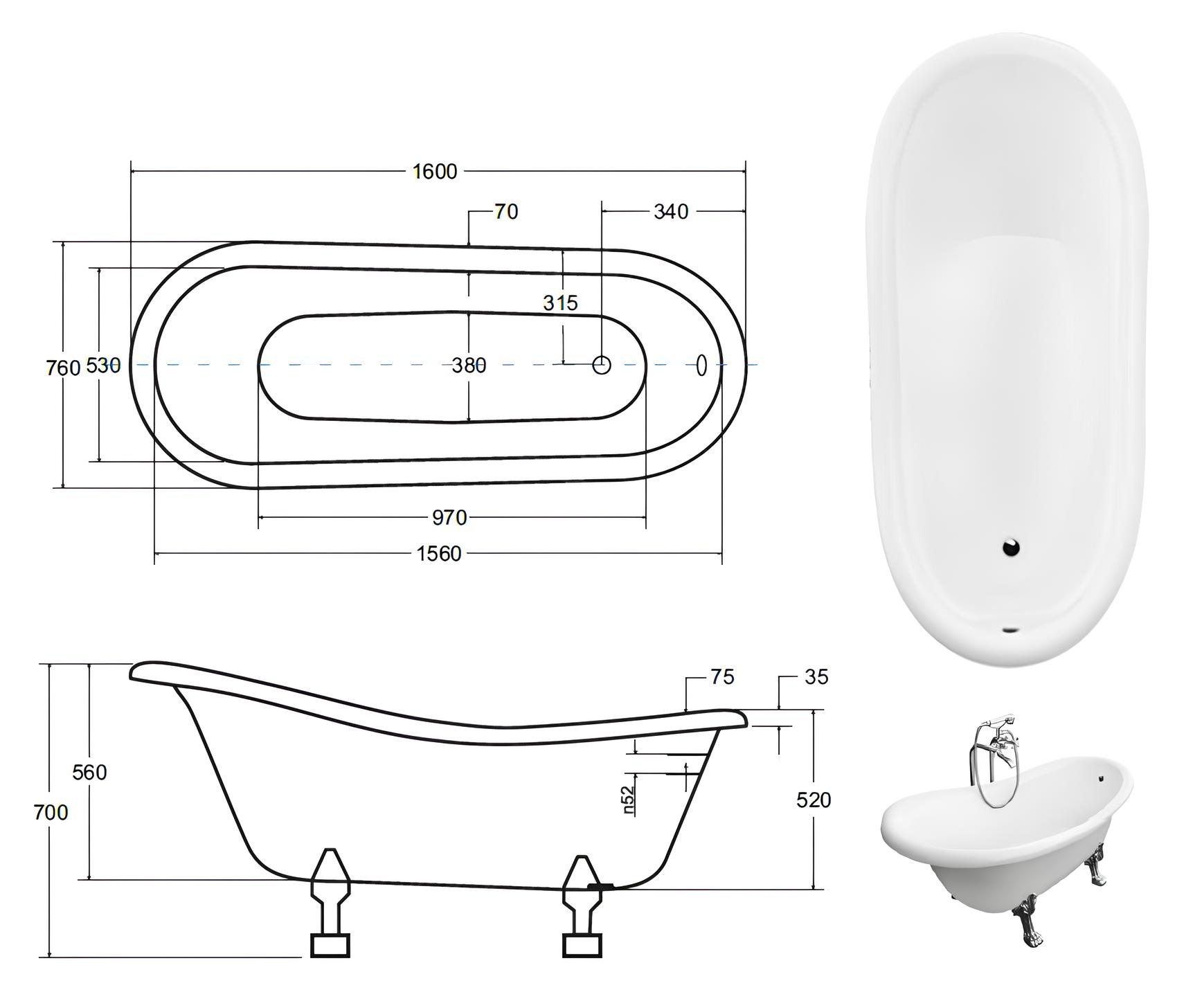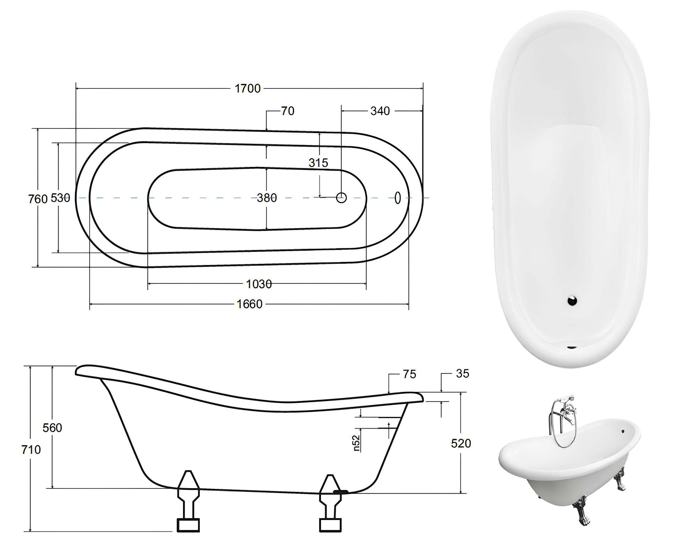 Vintage fristående badkar, klassiskt, nytt | xlmobler.se