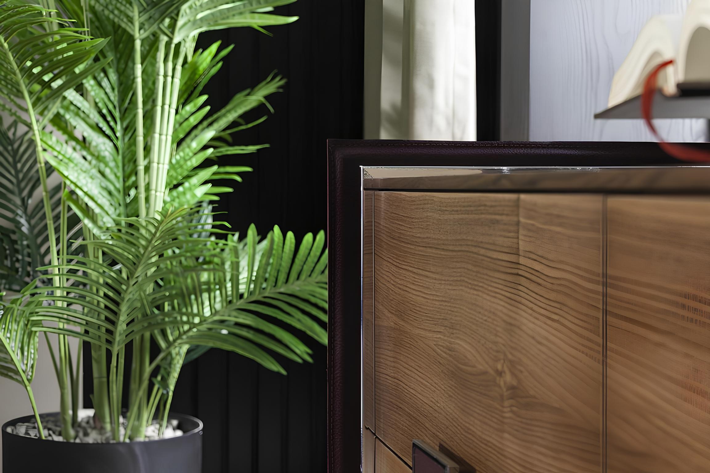 Det ideella sovrumsinredningssetet förenar tidlös elegans med modern funktionalitet. Bestående av en stilren garderob, ett praktiskt nattduksbord och en säng, erbjuder detta set en harmonisk balans av design och komfort. Den djupa bruna nyansen, noggrant utvald för att framhäva naturens skönhet, ger en varm och inbjudande atmosfär. Varje del är skapad med precision och omsorg, vilket återspeglar en exklusiv livsstil där inget lämnas åt slumpen. Med över 20 års erfarenhet i att erbjuda lyxiga möbler, är detta set den perfekta investeringen för den som värdesätter kvalitet och stil i sitt hem. Skapa en oas av ro och skönhet med detta förtrollande inredningsset.