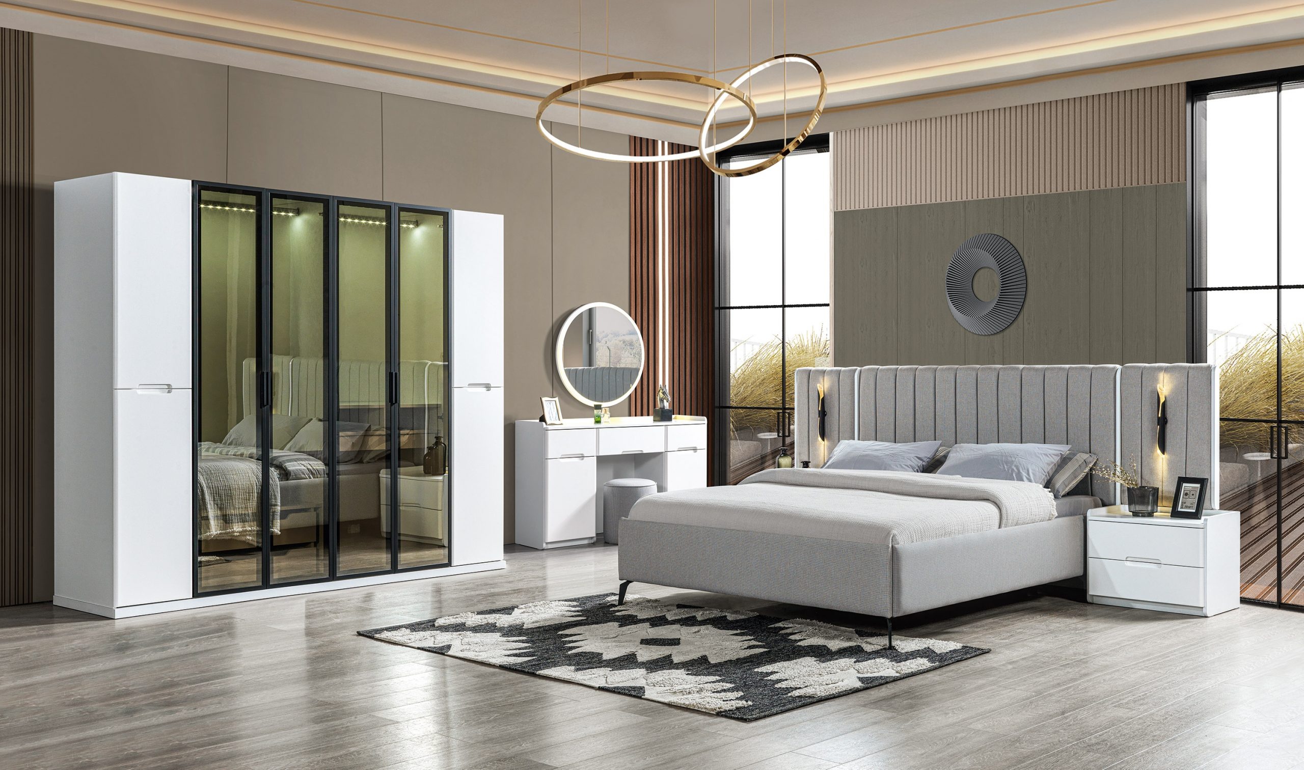 Sängmöbelsetet i fyra delar erbjuder en oöverträffad kombination av funktionalitet och stil, perfekt för den som uppskattar det exklusiva. Den gråa träfinishen ger en tidlös elegans, som harmoniserar med olika inredningsstilar. Sängen, med sina generösa mått, bjuder in till en avkopplande sömnupplevelse, medan garderoben erbjuder rymlig förvaring, organiserad med finess. Nattduksbordet, med sin subtila design, fungerar som en perfekt komplement i rummet. Med 20 års erfarenhet av att skapa lyxiga möbler, framhäver detta set en livsstil av sofistikerad smak och kvalitet. Välj detta möbelset för att förvandla ditt hem till en oas av stil och komfort.
