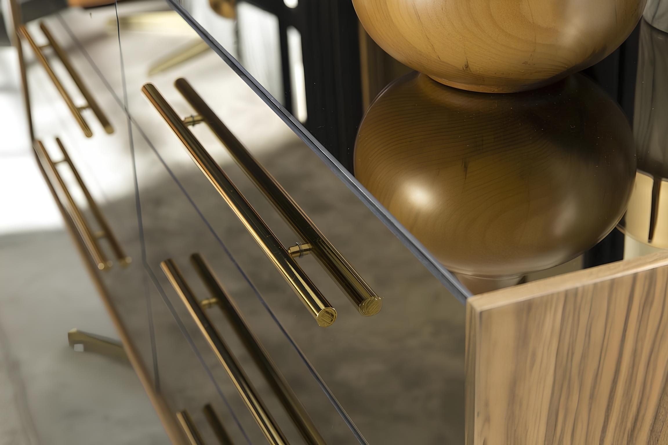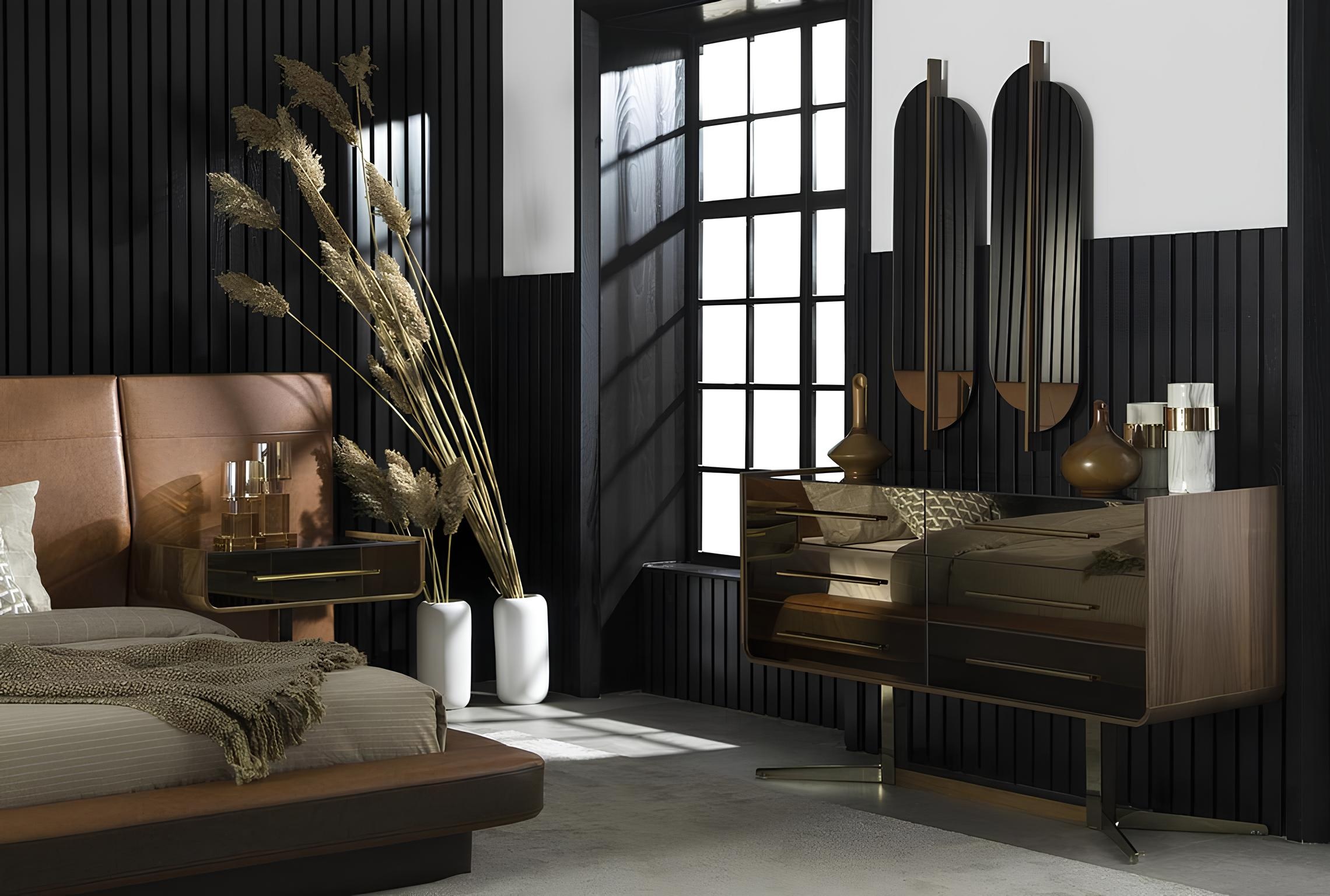 Detta eleganta sovrumsmöbelset, bestående av en säng, nattduksbord och garderob i fem delar, är en manifestation av tidlös lyx. Klädd i rik brun polyester, förenar varje komponent stilren design med exceptionell funktionalitet. Sängen erbjuder en oöverträffad komfort, medan nattduksbordet smidigt rymmer dina personliga tillhörigheter. Den rymliga garderoben kombinerar praktisk förvaring med en sofistikerad estetik, vilket skapar en harmonisk helhet. Med över 20 års erfarenhet i att skapa exklusiva möbler, garanterar detta set en atmosfär av elegans och stil. Välj detta möbelset för att förvandla ditt sovrum till en oas av lugn och lyx, där varje detalj reflekterar en livsstil i toppklass.