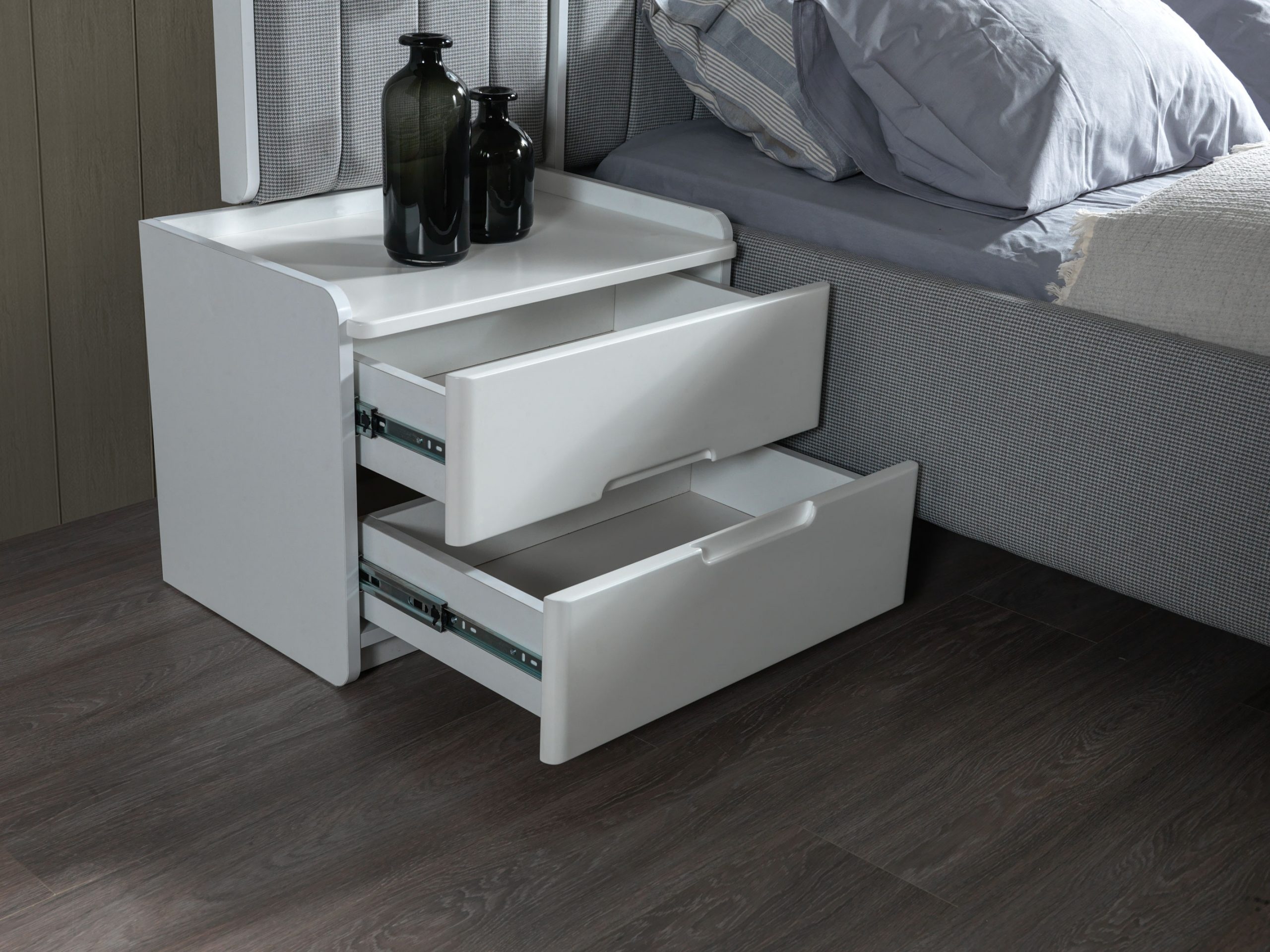 Det moderna vita nattduksbordet är en exemplarisk fusion av funktionalitet och tidlös elegans. Dess rena linjer och minimalistiska design skapar en harmonisk atmosfär i varje sovrum, samtidigt som den lyfter in en känsla av raffinerad stil. Tillverkat av högkvalitativa material garanterar detta nattduksbord både hållbarhet och en sofistikerad finish, vilket gör det till en idealisk följeslagare för den moderna livsstilen. Med en generös yta för lampor och personliga föremål erbjuder det både praktisk användbarhet och en estetisk höjdpunkt. Välj detta nattduksbord för att fullända din exklusiva inredning och skapa en oas av lugn och skönhet i ditt hem.
