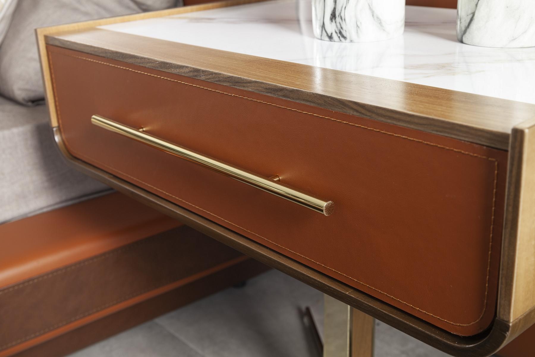 Det praktiska nattduksbordet med modernt förvaringsutrymme kombinerar funktionalitet med en tidlös elegans. Tillverkat i en djup brun nyans, framhäver det naturliga materialets rikedom och kvalitet, vilket ger en varm känsla till rummet. Med sin genomtänkta design erbjuder detta bord både stil och praktisk användning, där varje detalj är utformad för att harmonisera med den exklusiva livsstil du önskar. Som en del av vår kollektion av lyxmöbler, har detta nattduksbord en unik förmåga att förhöja atmosfären i ditt hem. Det är mer än bara ett möbel – det är en investering i en sofistikerad livsstil, noggrant skapad för att tillfredsställa även de mest krävande smakarna.