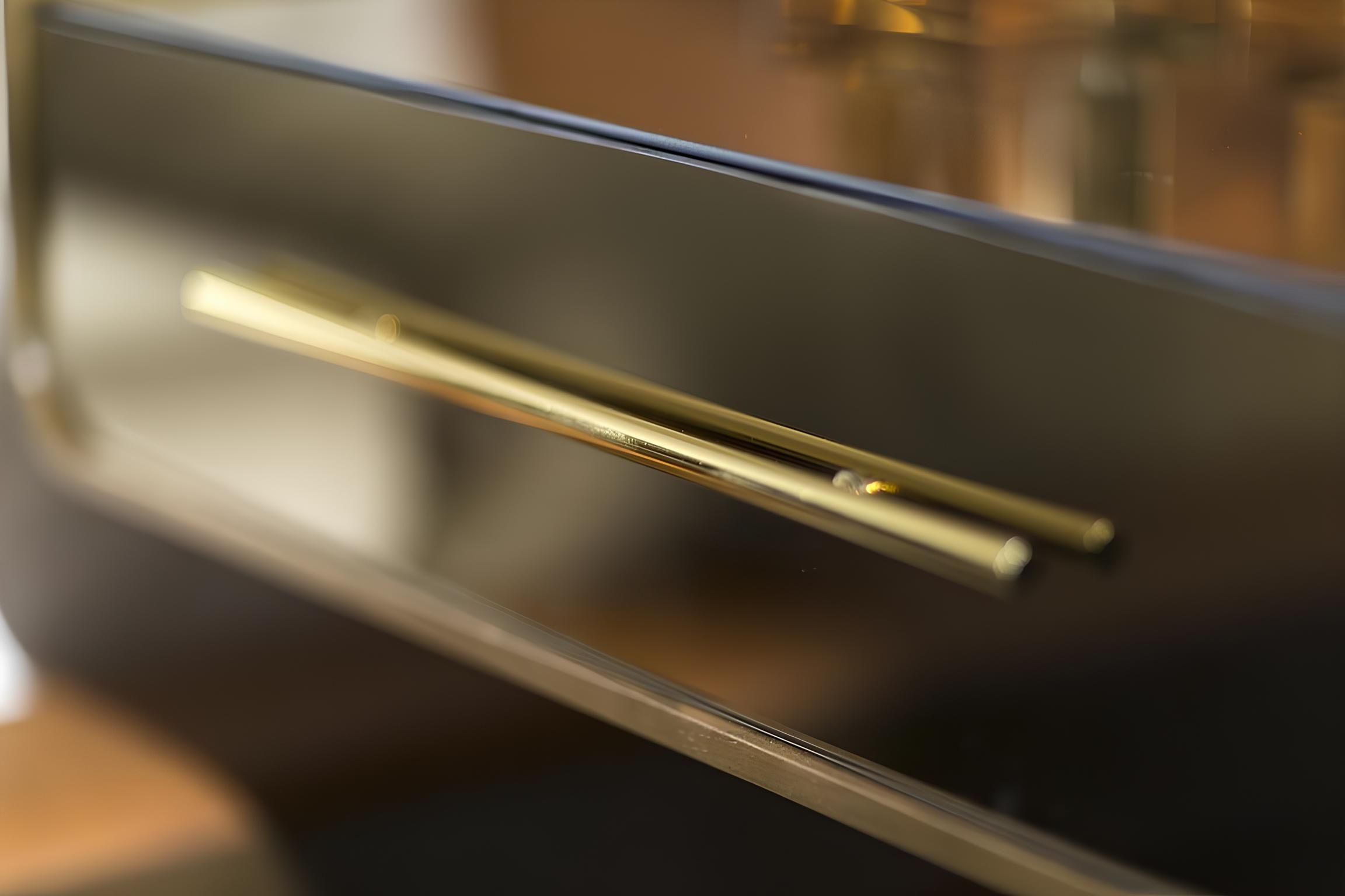 Denna säng med design och två nattygsbord i glas är en manifestation av modern elegans och tidlös stil. Klädd i djup brun polyester, förenar den mjukhet med en sofistikerad nyans som förhöjer rummets atmosfär. Nattygsborden, med sina transparenta glasytor, skapar en visuell lätthet och erbjuder samtidigt funktionalitet och stil. Den harmoniska kombinationen av material och färg gör detta möbelset till en perfekt accent för det exklusiva hemmet. Med över 20 års erfarenhet inom lyxfurniture, erbjuder vårt varumärke en kuraterad samling som förvandlar ditt utrymme till en oas av komfort och stil. Välj denna säng för att skapa en miljö där varje detalj andas lyx och kvalitet.