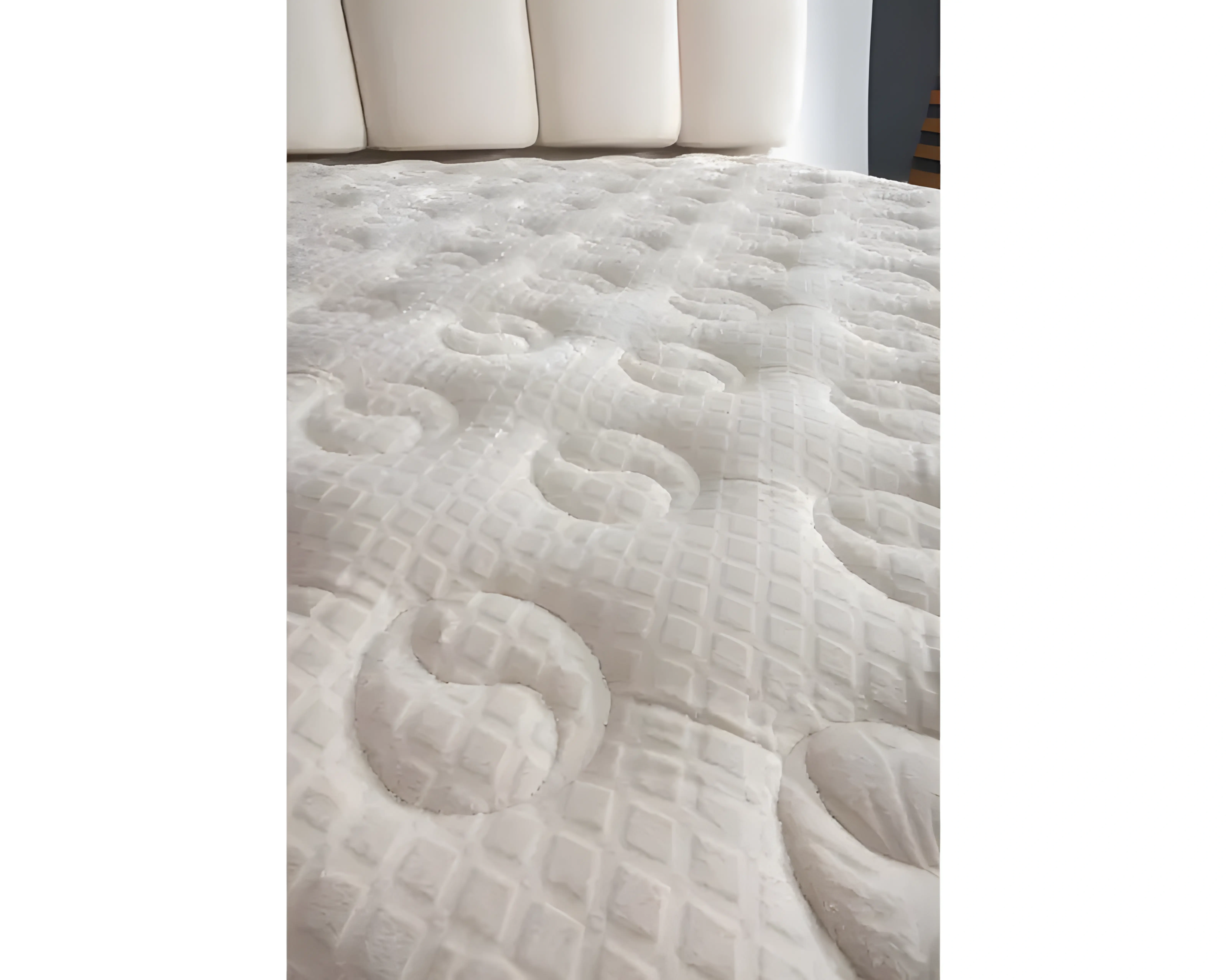 Den eleganta vita sängen med modern madrass förenar tidlös design med exceptionell komfort. Tillverkad i högkvalitativt trä, utstrålar denna säng en känsla av lyx och stil. Den rena, vita finishen ger en ljus och luftig atmosfär, perfekt för det exklusiva hemmet. Den noggrant utformade madrassen erbjuder en oöverträffad sömnupplevelse, vilket gör varje natt till en lyxig tillflyktsort. Med över 20 års erfarenhet i att skapa högklassiga möbler, representerar detta stycke en investering i både elegans och hållbarhet. Välj denna säng för att förhöja ditt sovrum och för att omfamna en livsstil där kvalitet och stil går hand i hand.