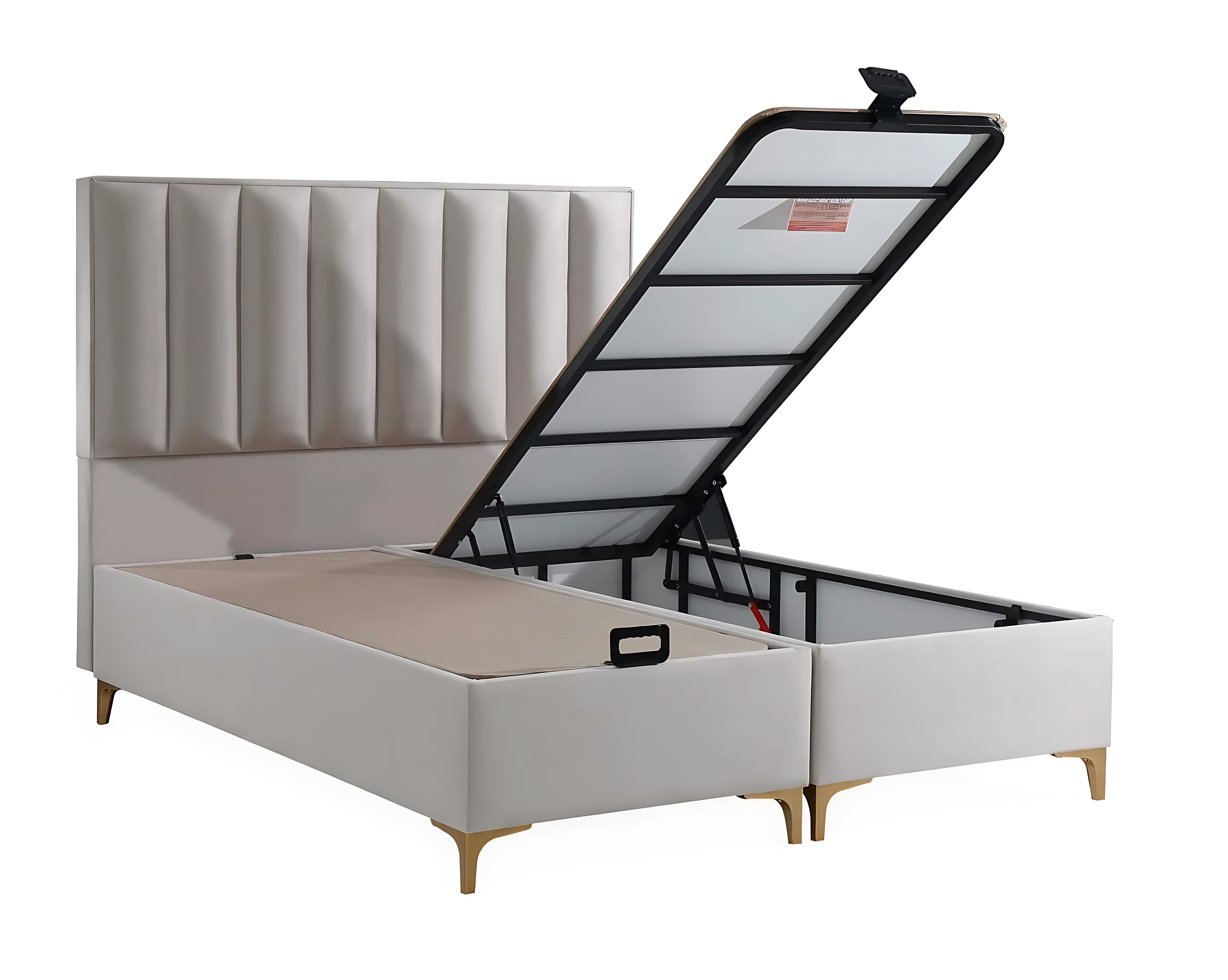 Säng elegant med ryggkuddar i färgen beige trä är en mästerlig kombination av stil och komfort, skräddarsydd för den som uppskattar det extraordinära. Varje detalj av denna säng är noggrant utformad för att skapa en förtrollande atmosfär i ditt hem. De mjuka ryggkuddarna erbjuder ett oöverträffat stöd, perfekt för avkoppling eller att njuta av en god bok. Det beige träet ger en varm och inbjudande ton, vilket gör att sängen harmoniskt smälter in i en exklusiv interiör. Med över 20 års erfarenhet inom lyxmöbler, representerar detta mästerverk en tidlös elegans och en livsstil av högsta kvalitet. Välj Säng elegant med ryggkuddar för att förvandla ditt sovrum till en oas av raffinerad lyx.