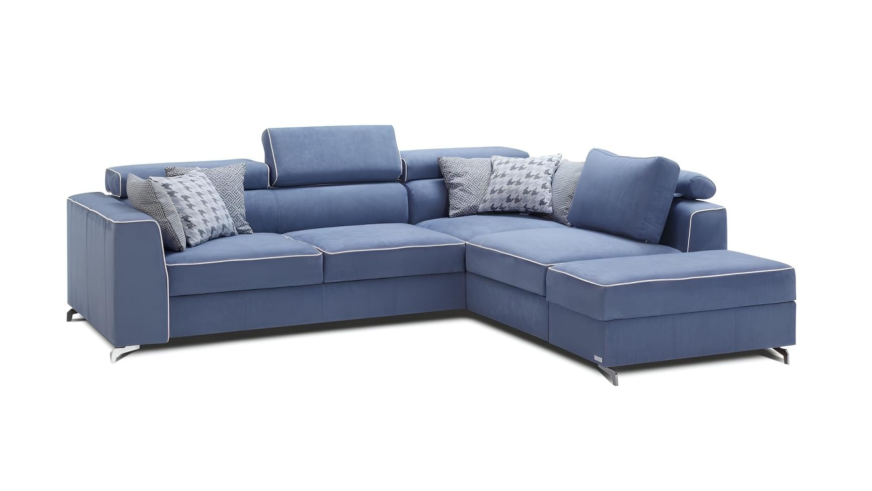 Den L-formade utdragbara soffan i elegant blått tyg förenar funktionalitet med tidlös skönhet. Dess sofistikerade design erbjuder både stil och komfort, vilket gör den till den perfekta mittpunkten i ett exklusivt hem. Den generösa storleken skapar en inbjudande atmosfär, idealisk för sociala tillställningar eller avkoppling i en privat sfär. Den högkvalitativa textilen har valts med omsorg för att säkerställa både hållbarhet och en lyxig känsla. Med över 20 års erfarenhet inom lyxmöbler har detta stycke blivit en symbol för ett utvalt liv, där varje detalj reflekterar en passion för elegans och kvalitet. Investera i denna soffa och förvandla ditt hem till en oas av stil och komfort.