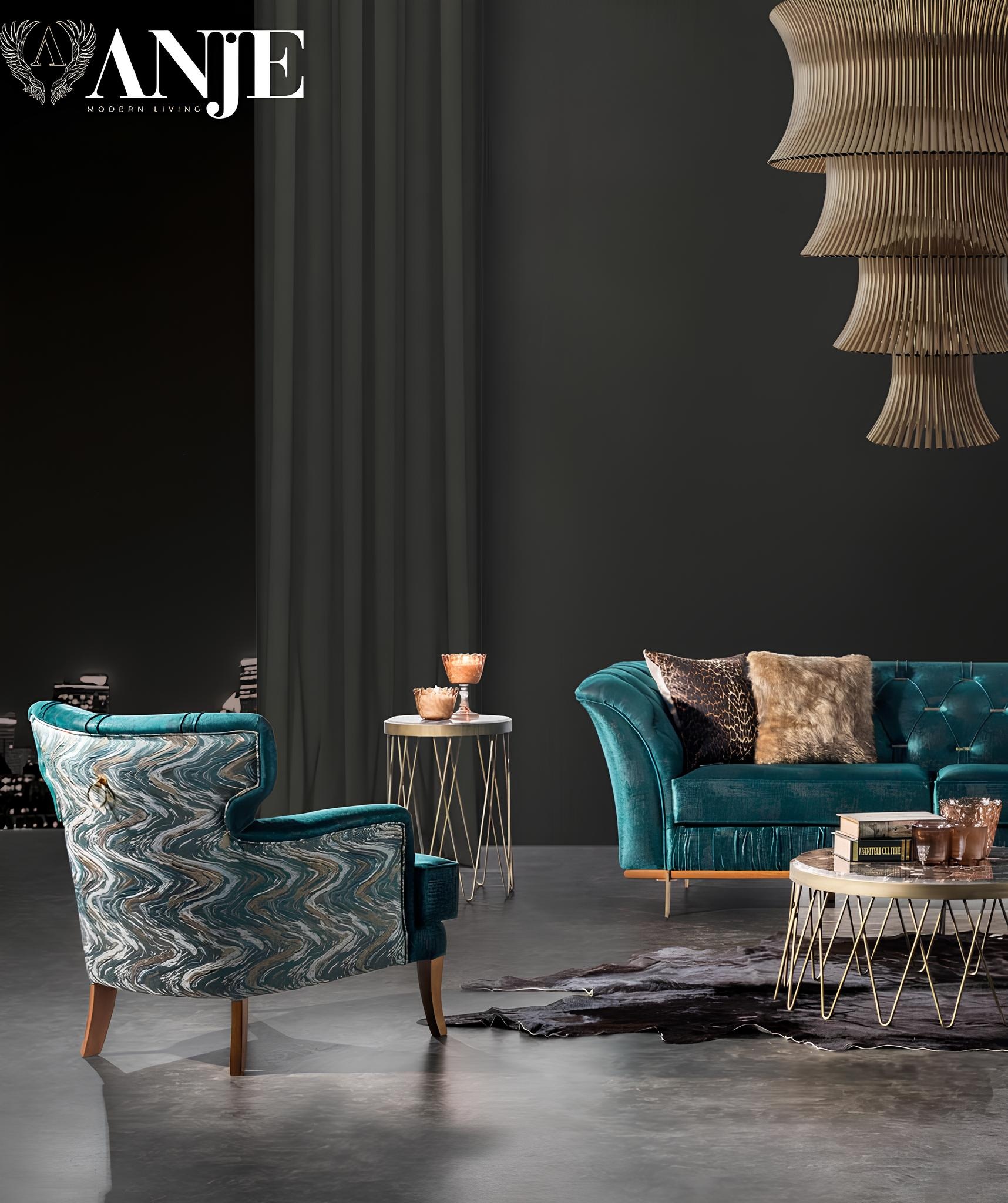 Lyxig soffa och fåtölj i modernt material för ett bekvämt utrymme