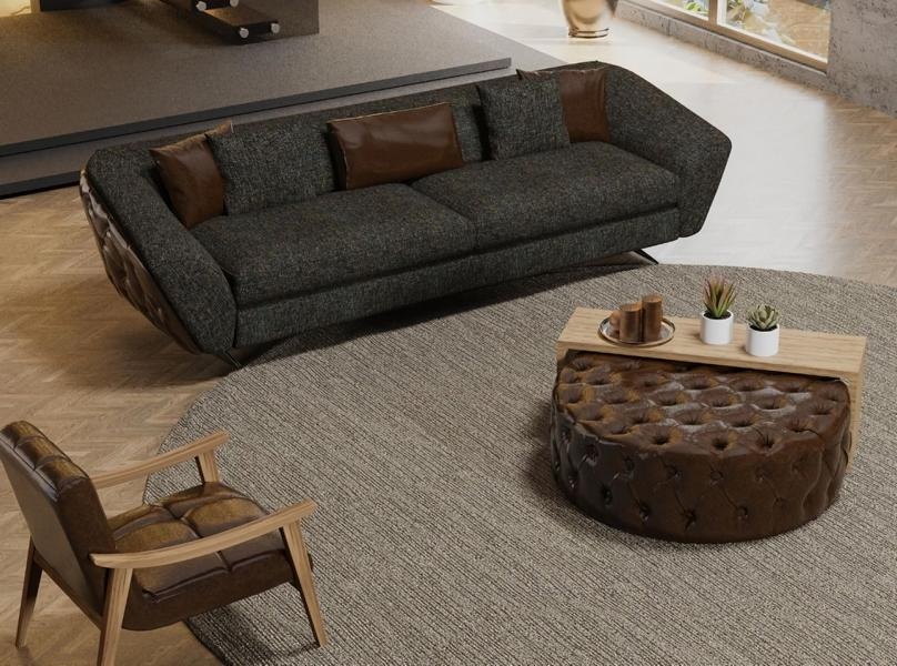 Upplev en harmonisk sammansättning av stil och komfort med vår exklusiva soffgrupp, fåtölj och moderna bord i brunt tyg. Denna eleganta trio är utformad för att förhöja ditt hem med en atmosfär av sofistikerad enkelhet. Det mjuka tyget omfamnar varje kurva och inbjuder till avkoppling. De rena linjerna och den moderna designen skapar en tidlös känsla, perfekt för den som värdesätter kvalitet och estetik. Med över 20 års erfarenhet av att erbjuda lyxiga möbler, representerar denna möbelserie en investering i en livsstil präglad av stil och exklusivitet. Gör ditt hem till en oas av elegans.