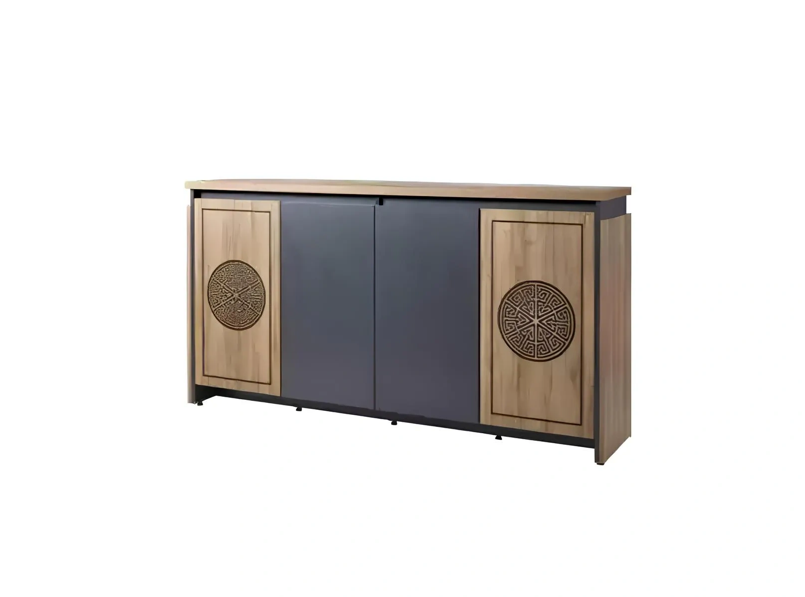 Det mörkbruna massiva träbordet med skåp förenar tidlös elegans med funktionalitet. Med sin robusta konstruktion och sofistikerade finish utstrålar det en aura av exklusivitet som förvandlar varje rum till en oas av stil. Det centrala skåpet erbjuder praktisk förvaring, perfekt för att hålla ditt utrymme organiserat och stilrent. Varje detalj är noggrant utformad för att reflektera en livsstil präglad av kvalitet och smak. Bordets djupa, rika ton framhäver den naturliga skönheten hos träet, vilket gör det till en perfekt mittpunkt för både vardagliga måltider och festliga tillställningar. Låt detta bord bli en del av ditt hem och omge dig med en känsla av lyx och stil.