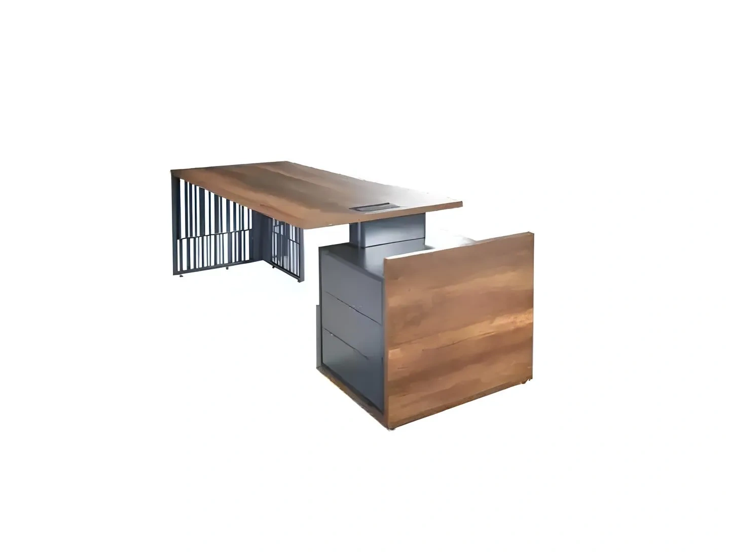 Det moderna skrivbordet kombinerar funktionalitet med tidlös elegans, vilket gör det till en oumbärlig del av ett exklusivt hem. Den rika bruna nyansen, noggrant utvald för att framhäva materialets kvalitet, ger en varm och inbjudande känsla. Med sin minimalistiska design och rena linjer blir skrivbordet en stilfull mittpunkt i rummet, perfekt för både arbete och kreativitet. Varje detalj är omsorgsfullt utformad för att spegla en lyxig livsstil, och den hållbara konstruktionen säkerställer långvarig skönhet. Som en del av vår 20-åriga tradition av exklusiva möbler, erbjuder detta skrivbord en unik möjlighet att förvandla din arbetsmiljö till en plats av inspiration och elegans.
