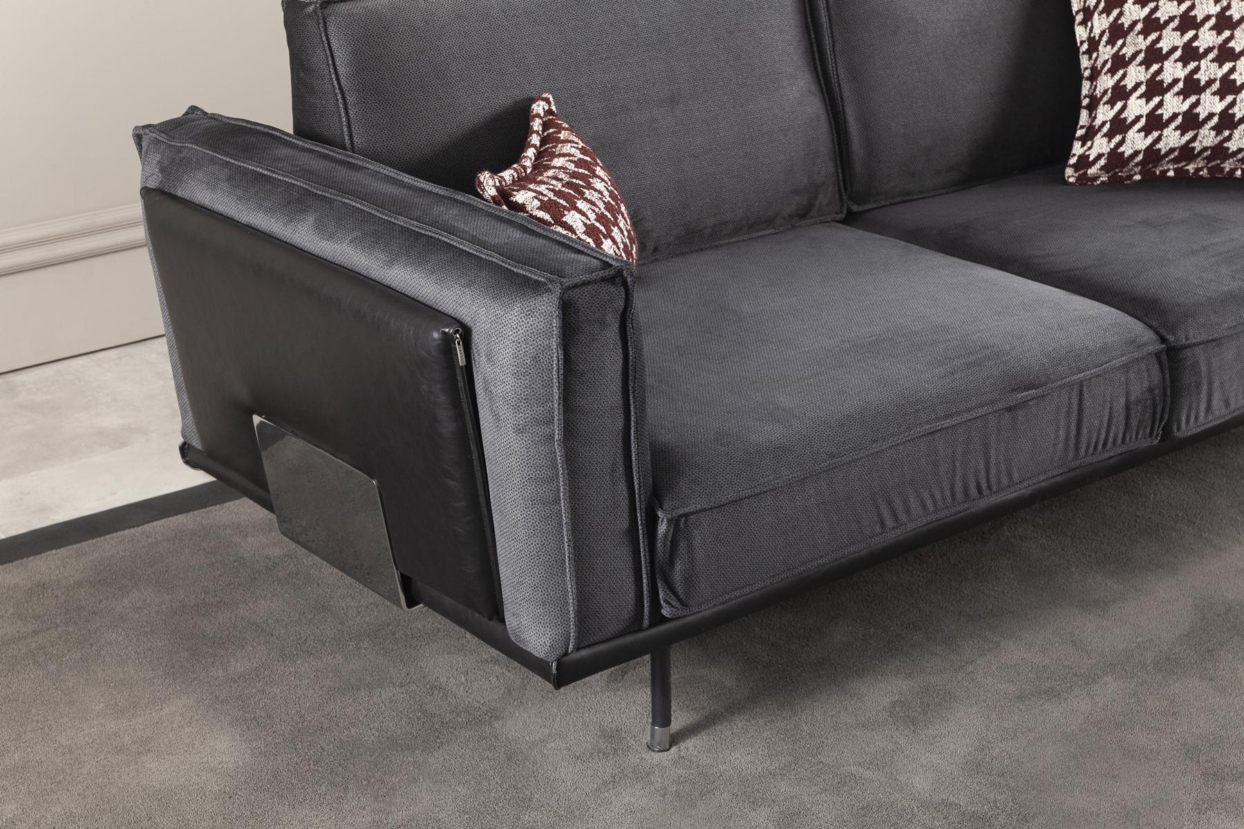 Lyxig italiensk soffa för 3 personer med mjuka grå kuddar | xlmobler.se