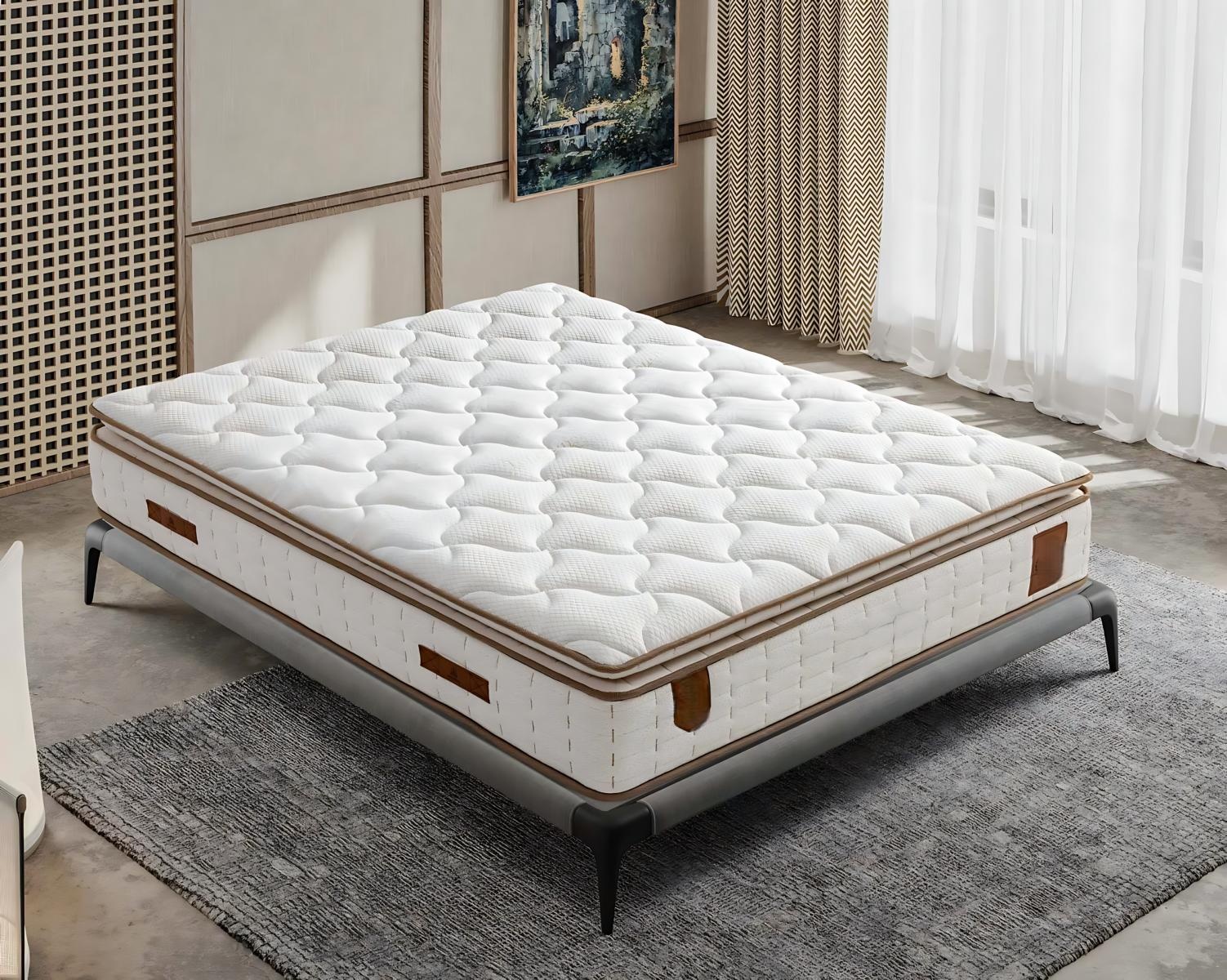 Den grå sängramen med tyg- och trä-madrass förenar modern design med tidlös elegans. Den subtila grå nyansen skapar en lugn atmosfär, medan den noggrant utformade trästrukturen erbjuder både stabilitet och stil. Varje detalj är genomtänkt för att ge en sofistikerad känsla, vilket gör denna sängram till en utmärkt investering för det exklusiva hemmet. Med en perfekt balans mellan komfort och estetik, blir den en centralpunkt i ditt sovrum, vilket speglar en livsstil av lyx och omtanke. Välj denna sängram för att omfamna en högre nivå av välbefinnande och skönhet i din privata oas.