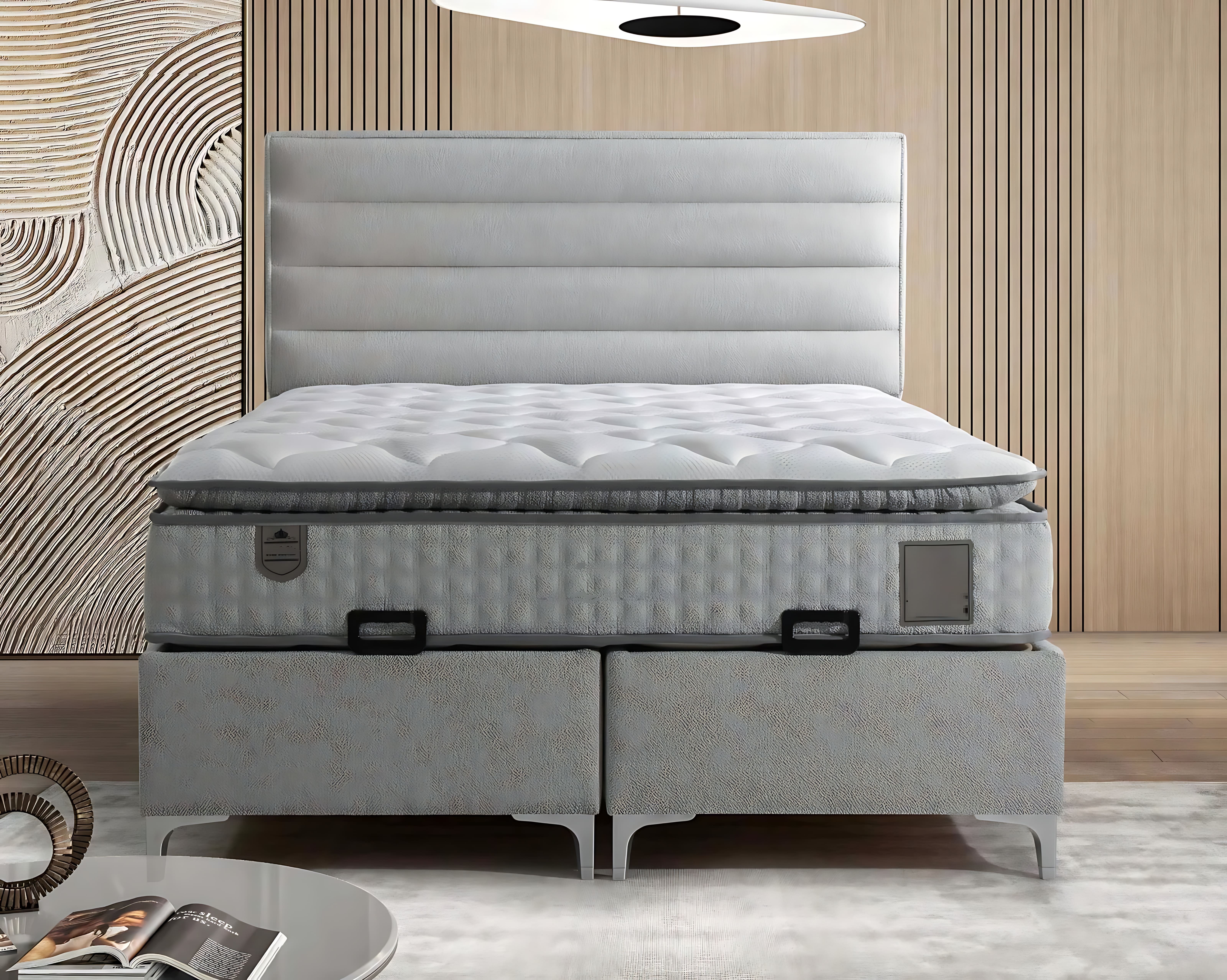 Sängen i modern grå tyg med elegant madrass representerar en harmonisk fusion av stil och komfort. Det gråa träet ger en subtil men ändå distinkt karaktär, perfekt för det exklusiva hemmet. Den noggrant utformade madrassen erbjuder en oöverträffad sömnupplevelse, vilket gör varje natt till en lyxig tillflyktsort. Med en design som förenar tidlös elegans med samtida detaljer, blir denna säng ett statement i varje sovrum. Vår passion för högkvalitativa möbler, som har förfinats under 20 år, återspeglas i varje aspekt av denna säng. Välj denna säng för att omfamna en livsstil där komfort och estetik går hand i hand.