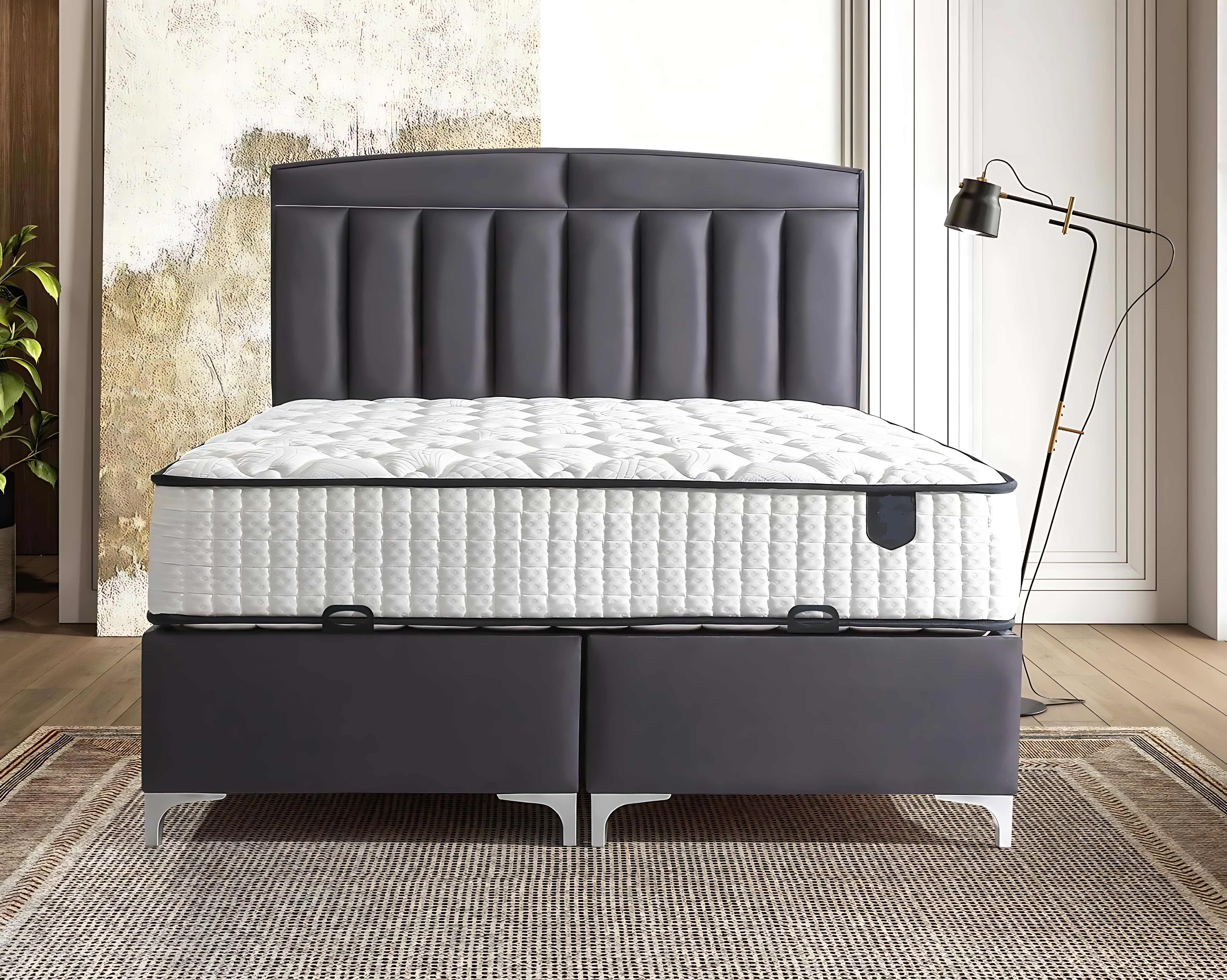 Detta set av modern säng med madrass, i elegant grå trä, förenar stil och komfort på ett enastående sätt. Varje detalj är noggrant utformad för att skapa en harmonisk atmosfär i ditt hem, där lyx och funktionalitet går hand i hand. Den tidlösa designen kompletteras av högkvalitativa material som garanterar hållbarhet och en känsla av exklusivitet. Sängen erbjuder en optimal sömnupplevelse, vilket gör den till den perfekta investeringen för den som värdesätter livskvalitet. Med över 20 års expertis inom lyxmöbler, erbjuder vårt varumärke en unik möjlighet att förvandla ditt sovrum till en oas av elegans och stil. Välj denna säng för att omfamna en livsstil av överflöd och raffinemang.